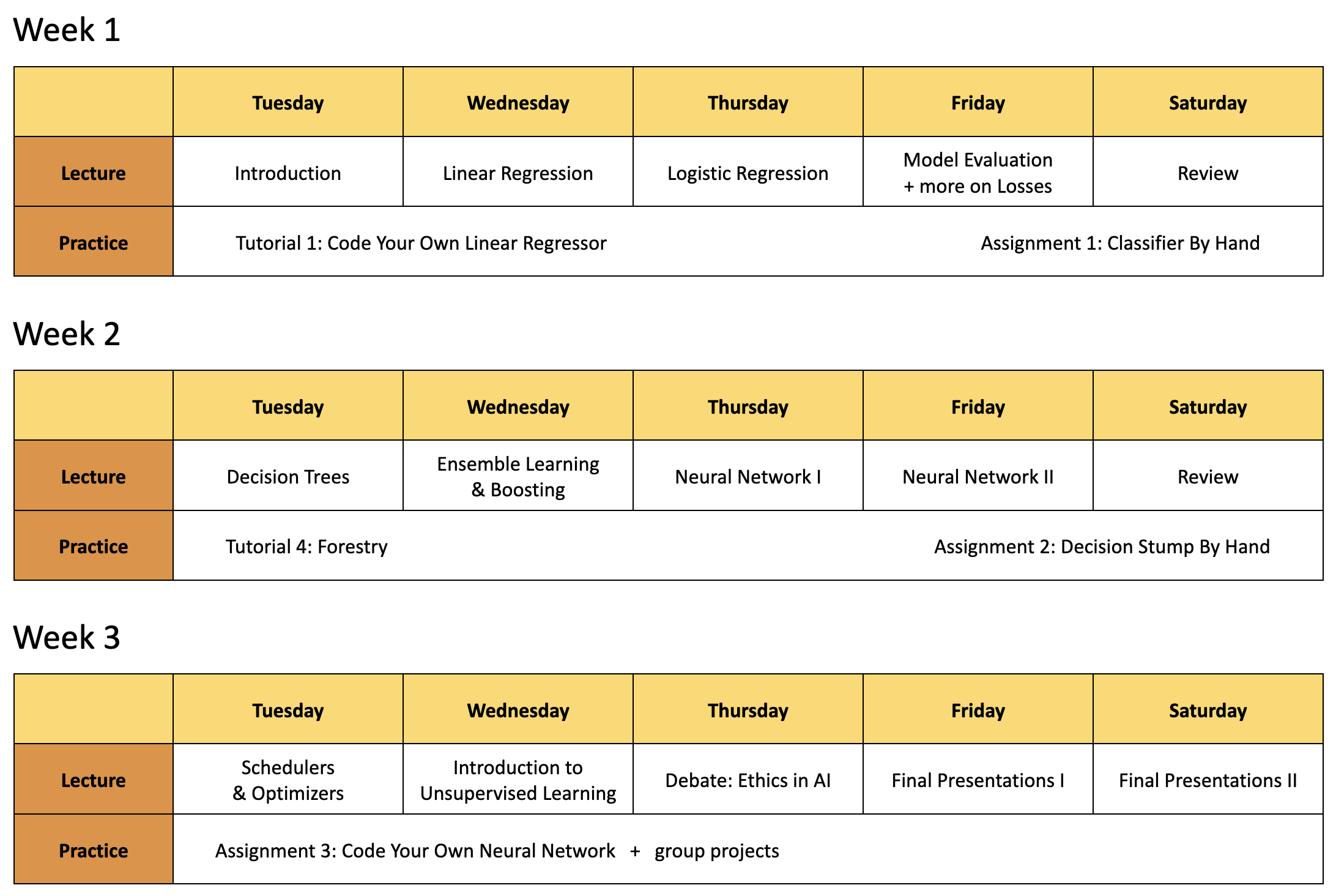 The table below shows a tentative weekly schedule for this course. There may be adjustements.