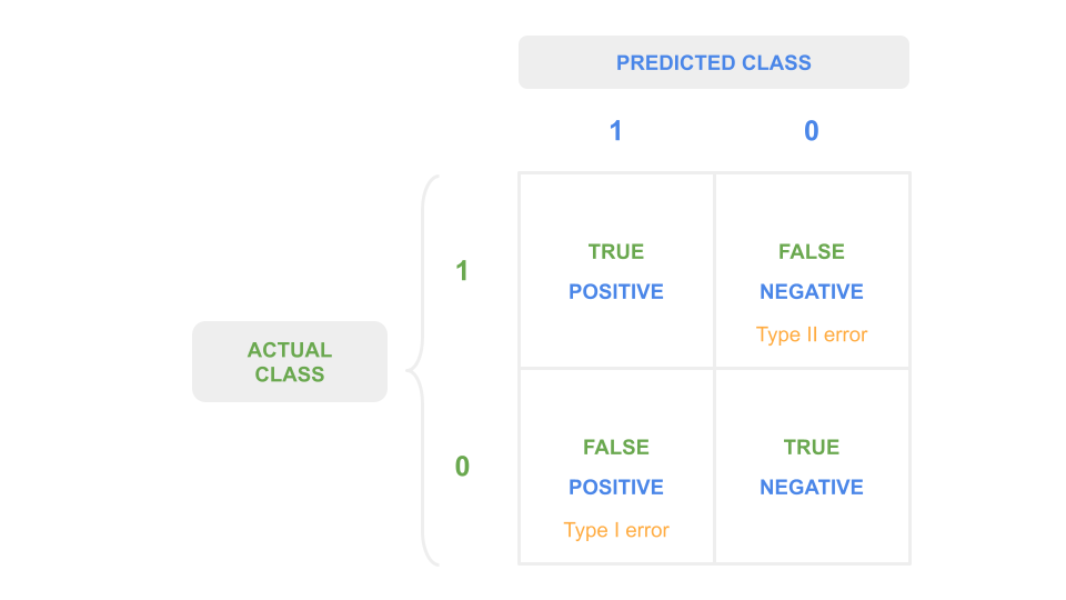 The total model error, i.e. the sum of all wrong predictions divided by the total number of predictions, is not a good metric as it mixes types I and II errors. There are other error measurements more appropriate to measure the performance for classification. The more popular ones associated with machine learning are defined below: